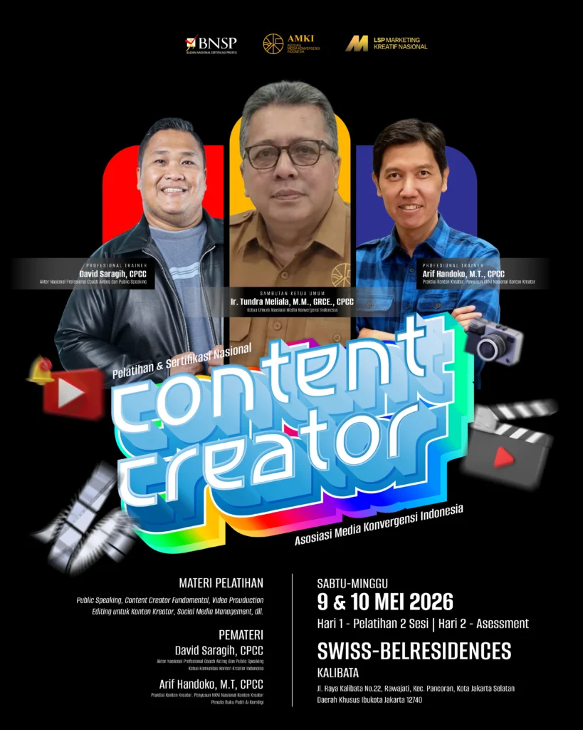 Investasi Pelatihan dan Sertifikasi Nasional Konten Kreator Asosiasi Media Konvergensi Indonesia Rp2.500.000,-